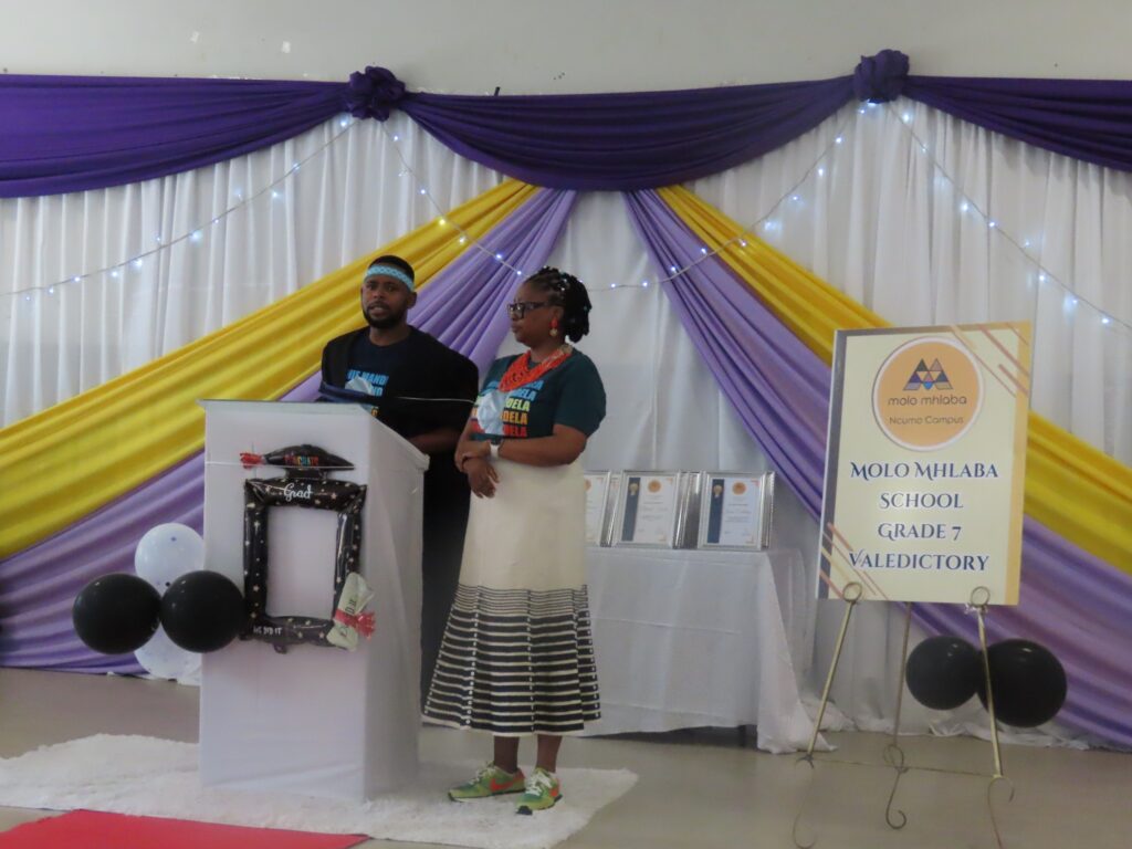Adding to the uniqueness of the celebration, Dr Sinobia Kenny, keynote speaker and long-time supporter of Molo Mhlaba, brought her daughter along. Remarkably, her daughter had been taught by Principal Sibulele Magini in a different Montessori setting, reflecting the deep, interwoven connections that make this educational journey so special. Her daughter also shared pearls of wisdom with the girls.